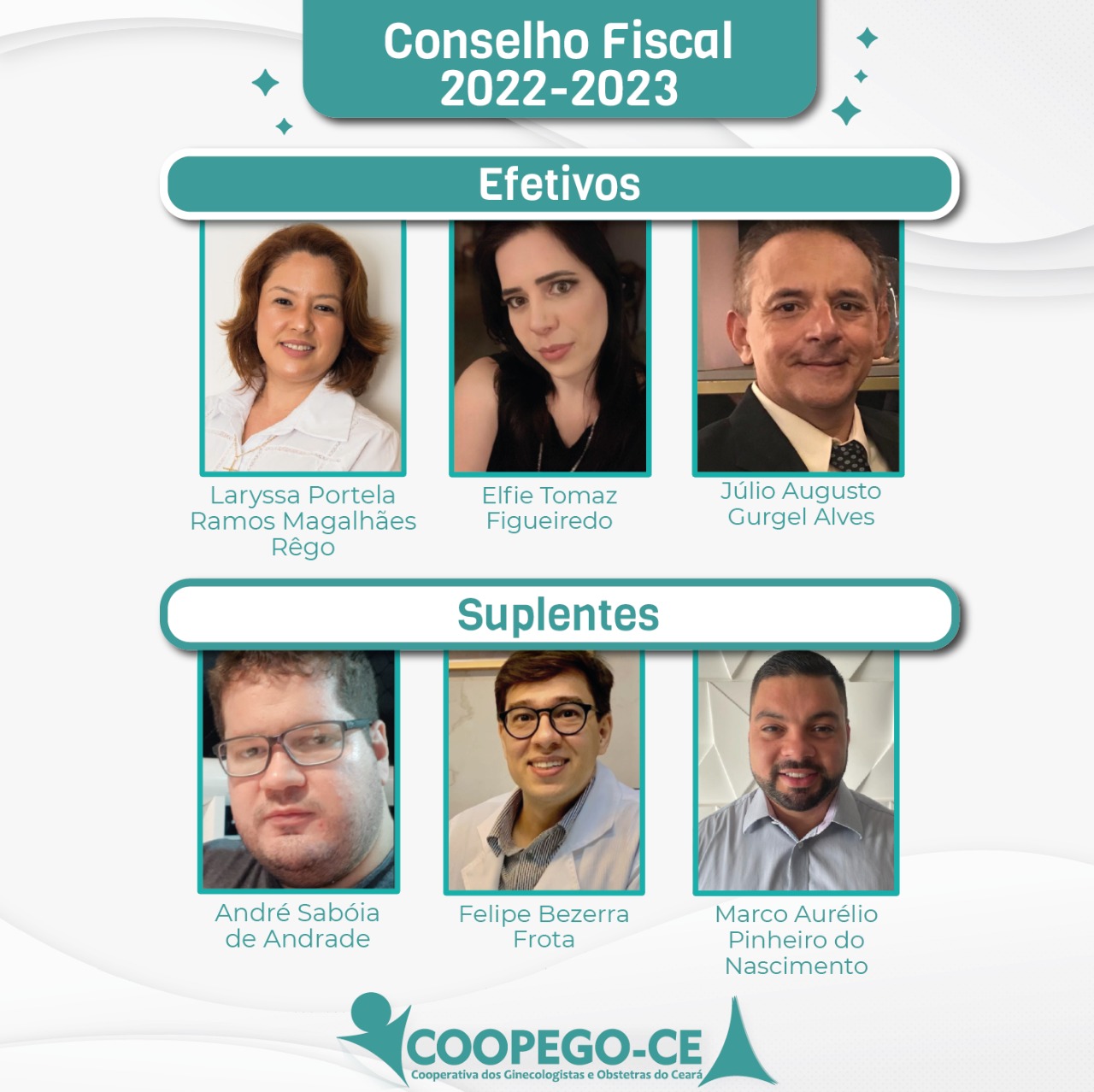 🔸 Conselho Fiscal 2022-2023: Laryssa Portela, Elfie Tomaz, Júlio Augusto, André Sabóia, Felipe Bezerra e Marco Aurélio.