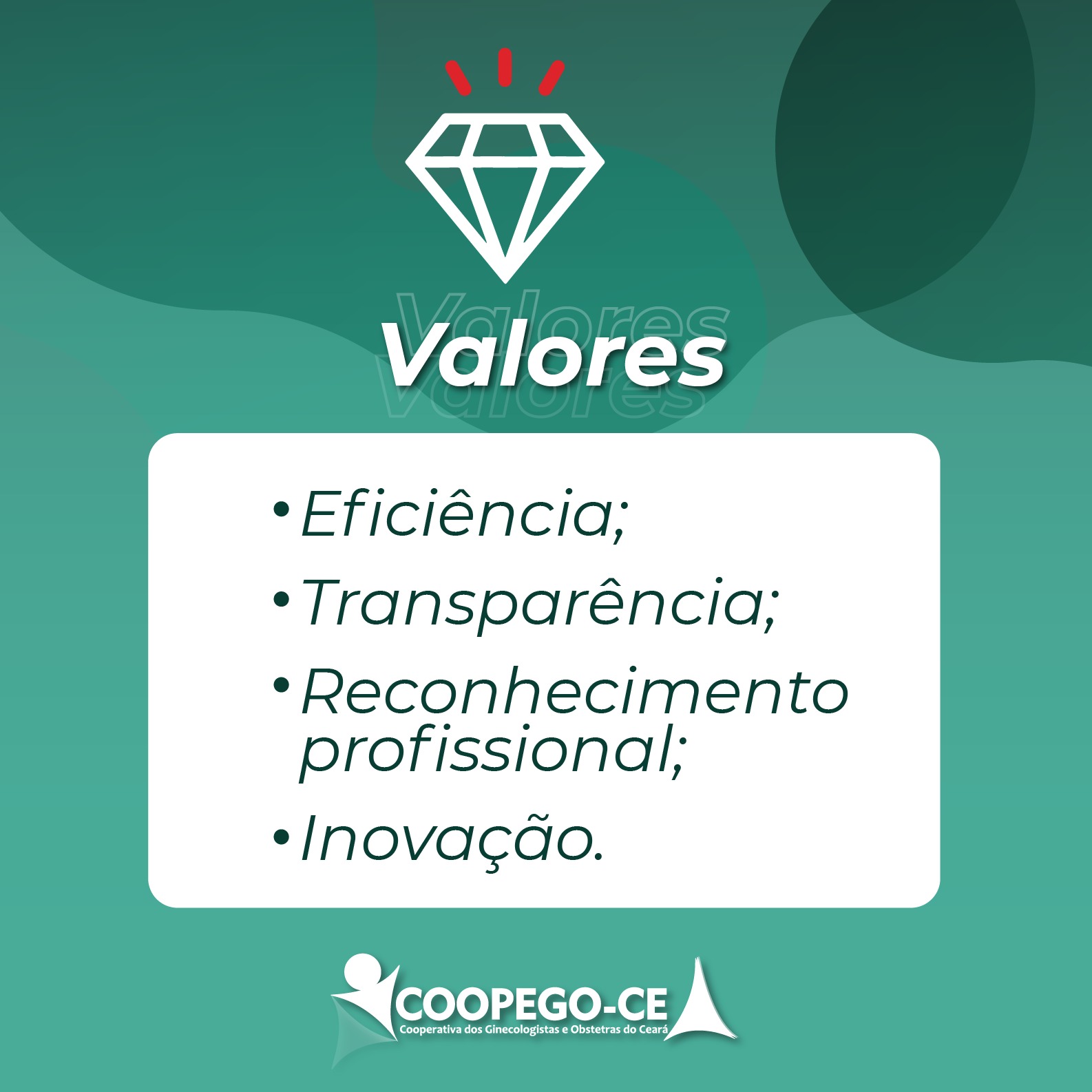 A Coopego acredita que a apresentação da missão, visão e valores é a forma mais poderosa de uma cooperativa inspirar, engajar e motivar os seus cooperados e a sua equipe, demonstrando os princípios que nos levaram ao sucesso, e respondendo o que a organização se propõe a fazer e para quem. 👩🏽⚕️🧑🏻⚕️👨🏼⚕️