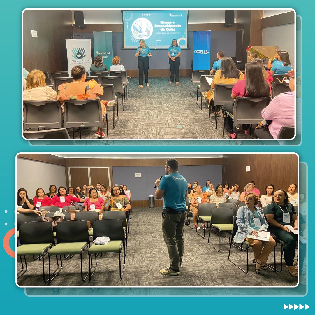Hoje a Coopego realizou, no Hotel BS Tower, um curso gratuito com foco em Glosas e Preenchimento de Guias, para as atendentes dos nossos cooperados.