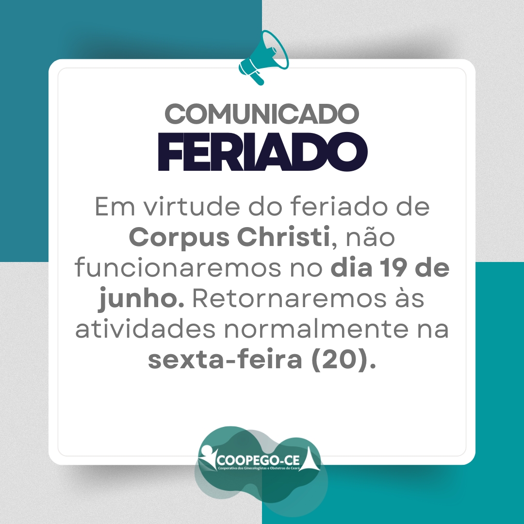 Em virtude do feriado de Corpus Christi não funcionaremos no dia 19 de junho. Retornaremos …