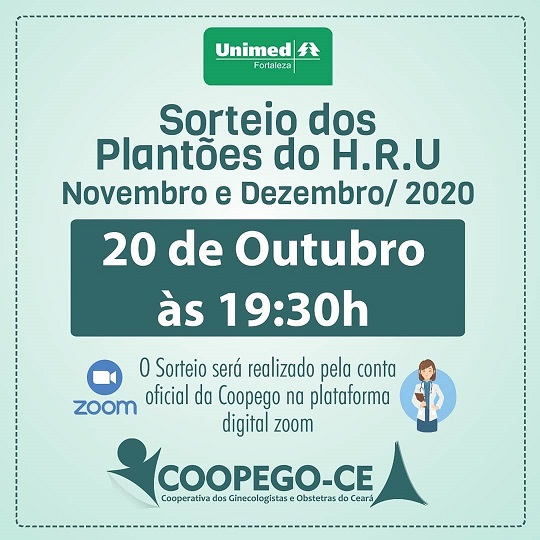 Atenção, Cooperados! Sorteio dos Plantões do H.R.U , referente aos meses de Novembro e Dezembro/ 2020