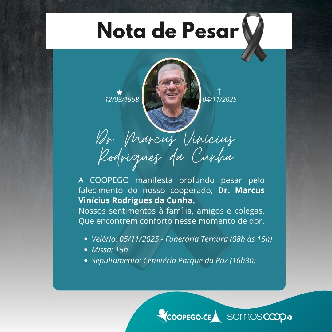 🖤 Nota de Pesar ⠀ A COOPEGO manifesta profundo pesar pelo falecimento do nosso cooperado, …