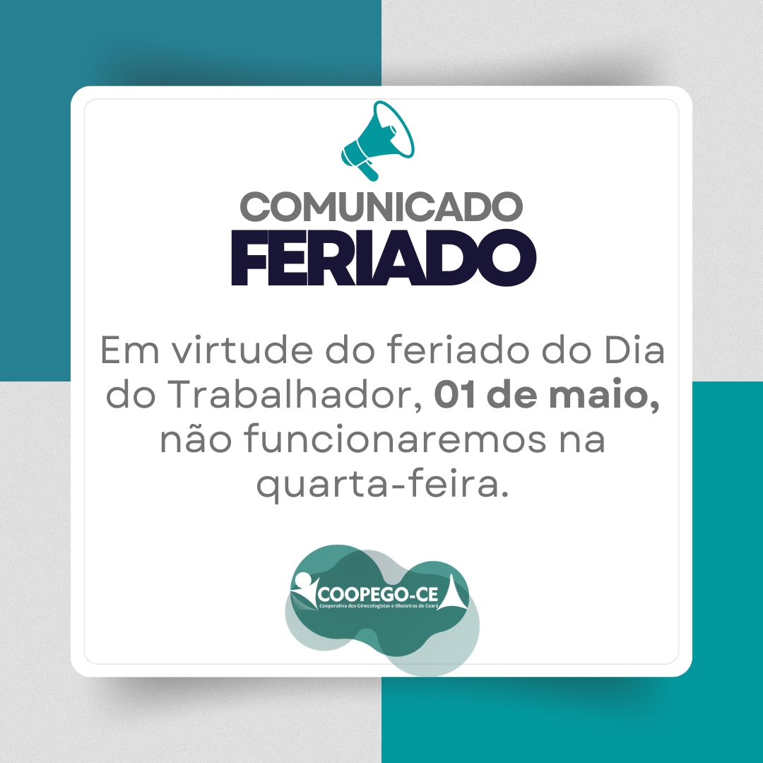 ⚠️ Atenção cooperados (as) A COOPEGO não funcionará amanhã, 01 de maio, devido ao feriado …