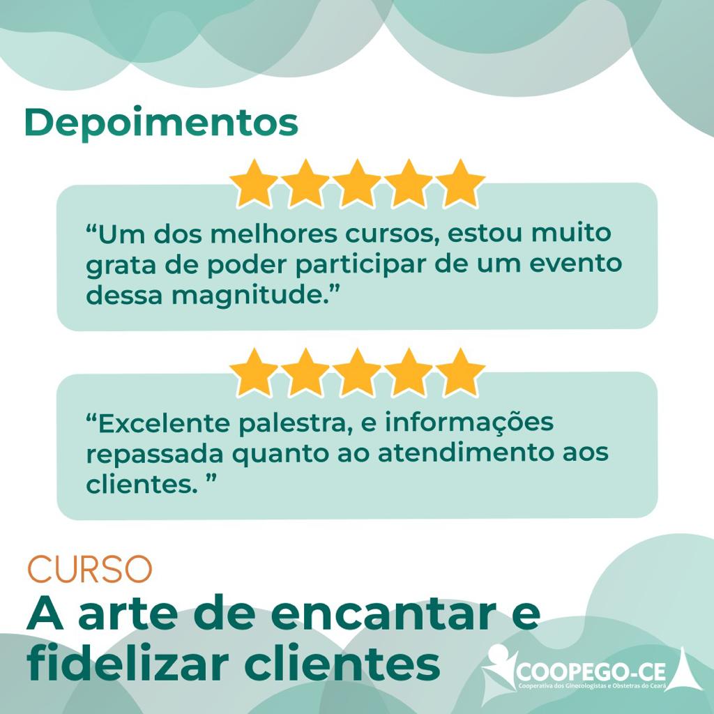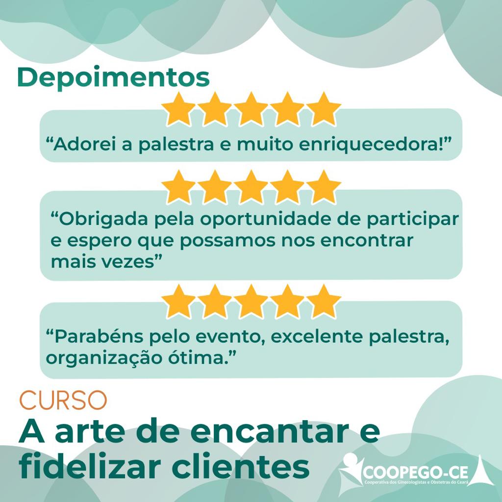 Registros e depoimentos sobre o curso A Arte de Encantar e Fidelizar Clientes